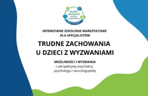 • INTENSYWNE SZKOLENIE WARSZTATOWE DLA SPECJALISTÓW „TRUDNE ZACHOWANIA U DZIECI Z WYZWANIAMI. Możliwości i wyzwania z perspektywy psychiatry, psychologa, neurologopedy”