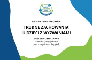 • WARSZTATY DLA RODZICÓW „TRUDNE ZACHOWANIA U DZIECI Z WYZWANIAMI. Możliwości i wyzwania z perspektywy psychiatry, psychologa i neurologopedy”