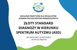 • SZKOLENIE PRAKTYCZNE DLA SPECJALISTÓW PORADNI PSYCHOLOGICZNO-PEDAGOGICZNYCH „ZŁOTY STANDARD DIAGNOZY W KIERUNKU SPEKTRUM AUTYZMU (ASD). Jak zaplanować i przeprowadzić skuteczną diagnozę”